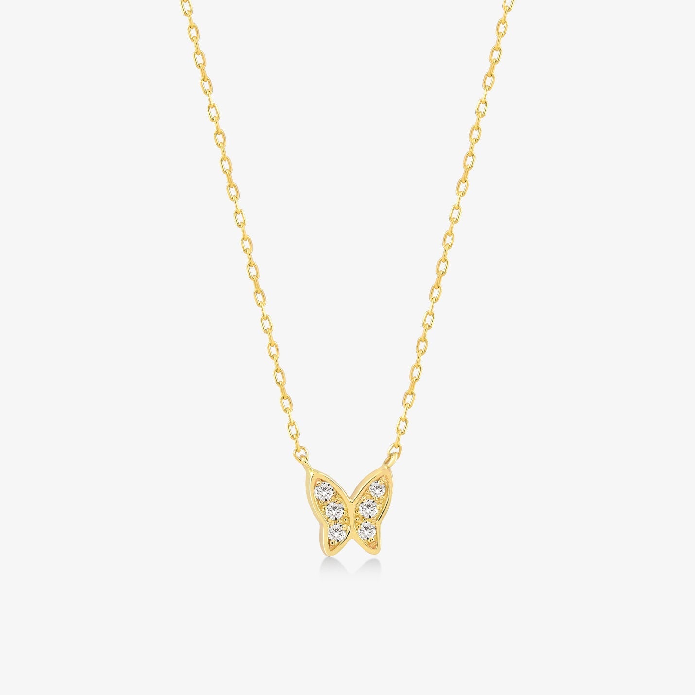 Delicate and enchanting, the Flutta Necklace celebrates nature’s grace with a shimmering butterfly charm. Handcrafted with real diamonds and suspended from a fine gold chain, it adds a subtle sparkle and charm to any neckline.