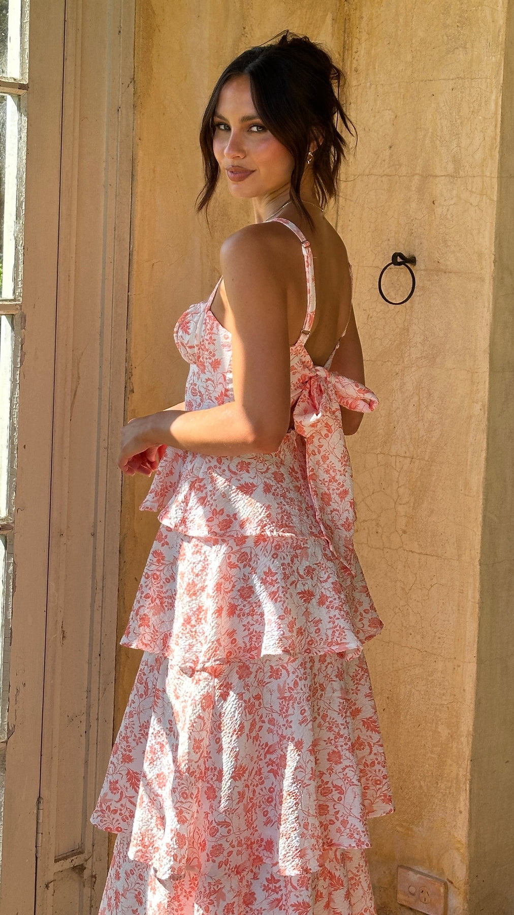 Ethereal and endlessly romantic, the FLORI dress captures a garden’s whisper in every tier. With delicate shoulder straps, a soft ruched bodice, and cascading layers of blush floral print, it blends elegance with playful femininity. Ideal for golden-hour gatherings or afternoon strolls through blooming paths.